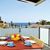 The 2-storey villa has typically Spanish exteriors, with whitewashed walls and rustic-looking window shutters. The top level is dominated by a wraparound outdoor terrace. There’s a dining table up here so you’re all set for sunset dinners looking out to sea. Down on the ground floor, meanwhile, you’ll find a swimming pool edged by palm trees and a well-tended lawn.